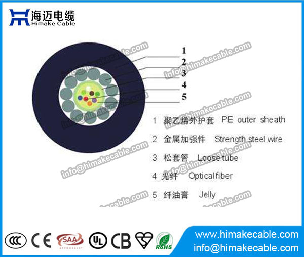 Die Fasern, 250um, befinden sich in einer zentralen Bündelader einen hohen Elastizitätsmodul Kunststoff. Der Schlauch ist mit einem wasserdicht Spachtelmasse gefüllt, lokalisiert in der Mitte des Kerns, eine Schicht aus Wasser-blocking Material wird angewendet, um die Kabelseele um Eindringen von Wasser zu verhindern. Nachdem Stärke Stahl Drähte wird angewendet, um die Bündelader, ist das Kabel mit einem PE-Außenmantel abgeschlossen.